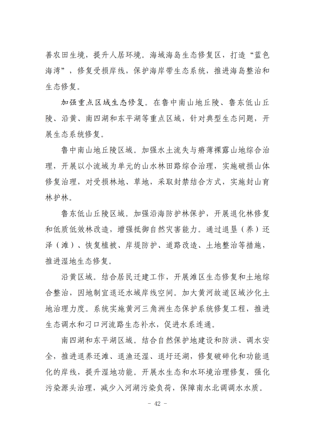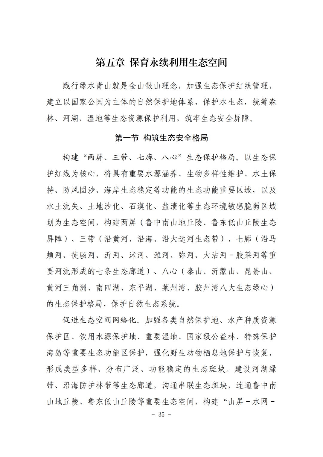 筑牢鲁中南山地丘陵、鲁东低山丘陵生态屏障,保育沿黄、沿海、沿大运河生态带,构筑以“两屏三带”为重点的生态安全格局。