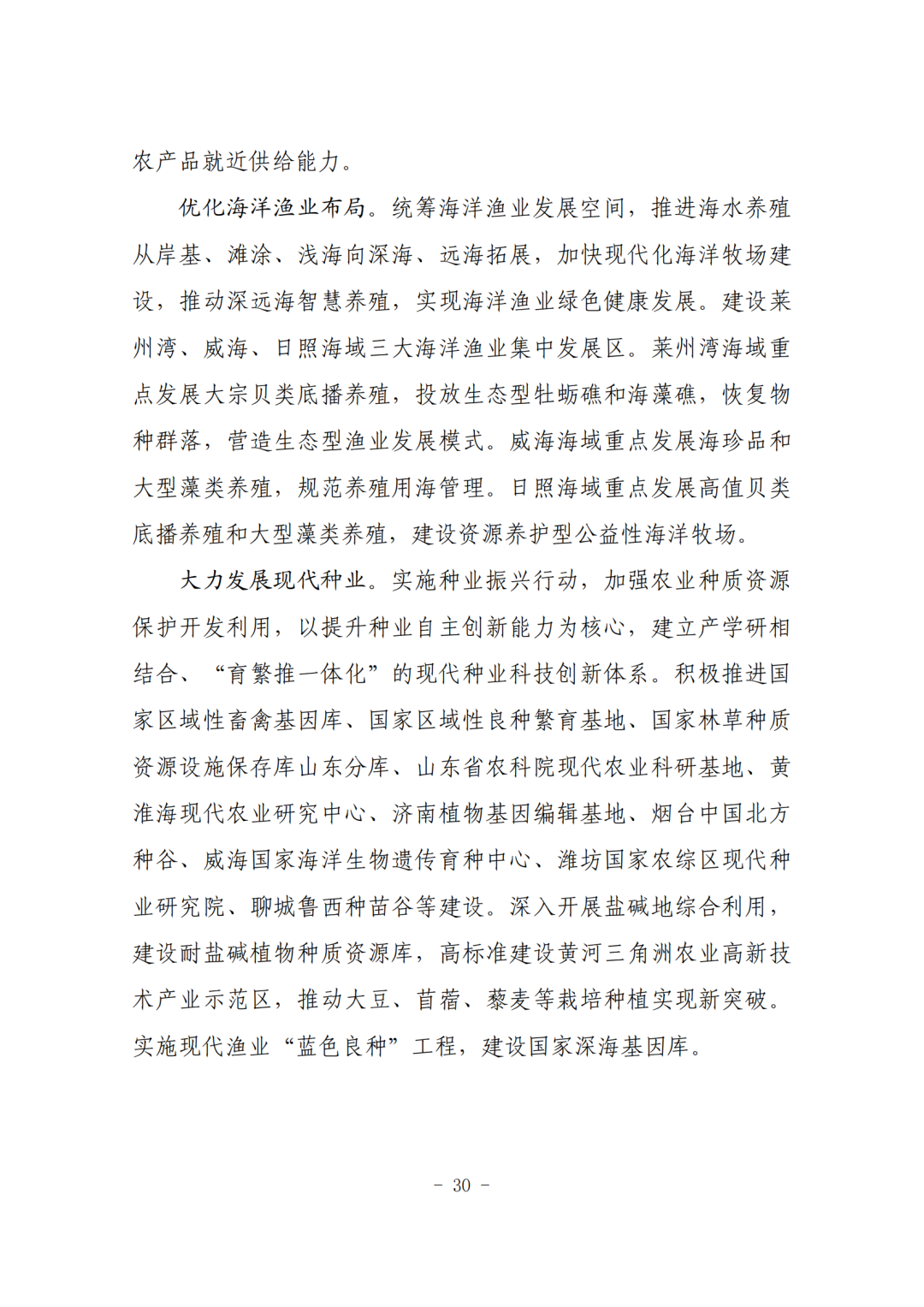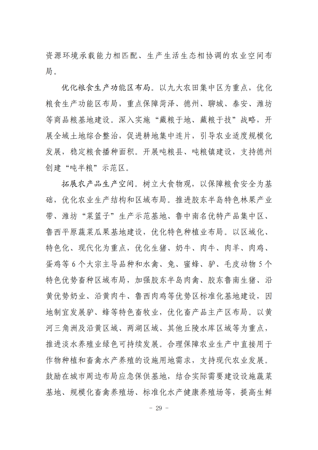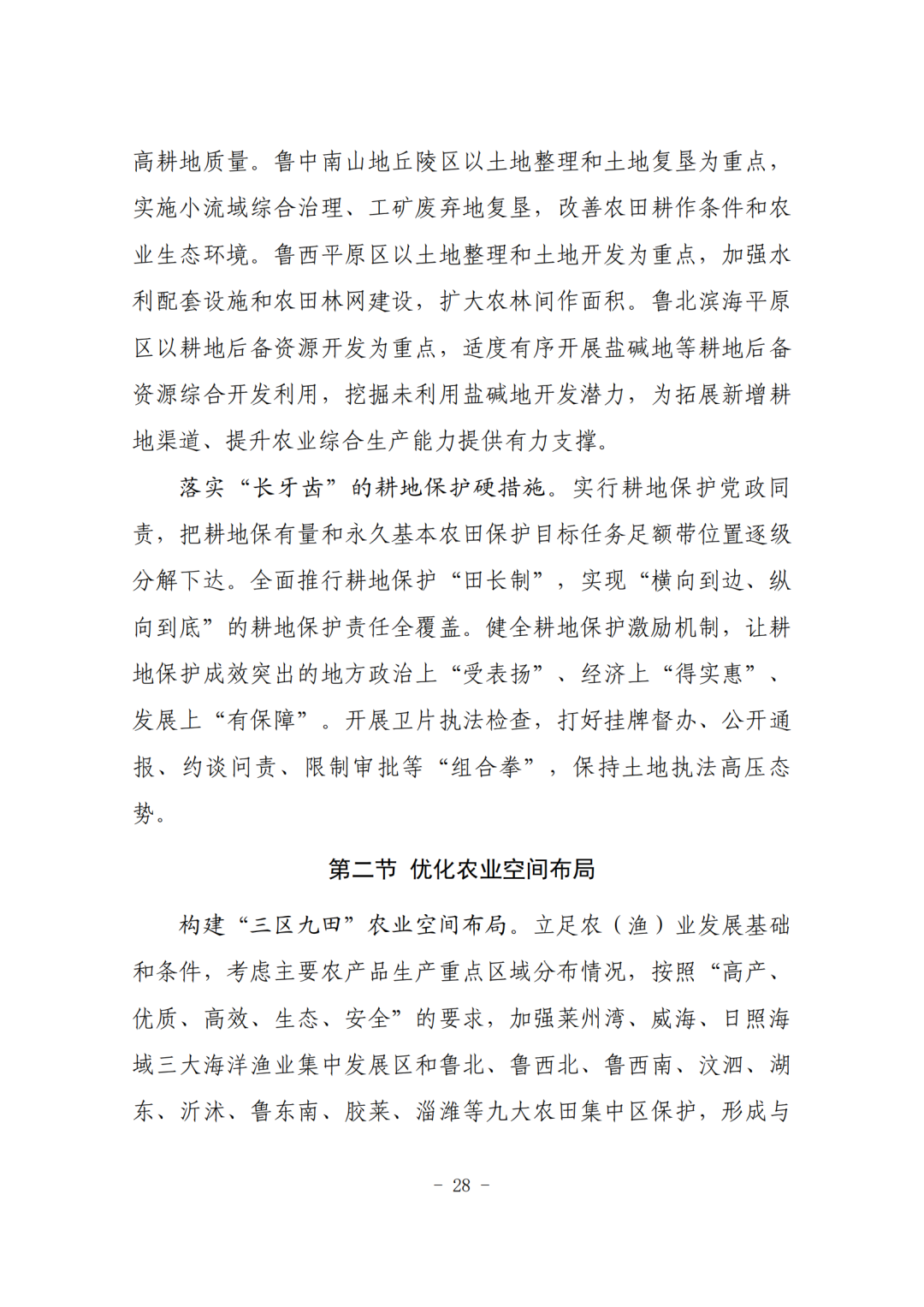 建设莱州湾、威海、日照海域三大海洋渔业集中发展区,重点保护鲁北、鲁西北、鲁西南、汶泗、湖东、沂沭、鲁东南、胶莱、淄潍九大农田集中区,打造“三区九田”农业空间布局,持续增强粮食和重要农产品供给保障能力,牢牢把住粮食安全主动权,扛牢农业大省的责任。