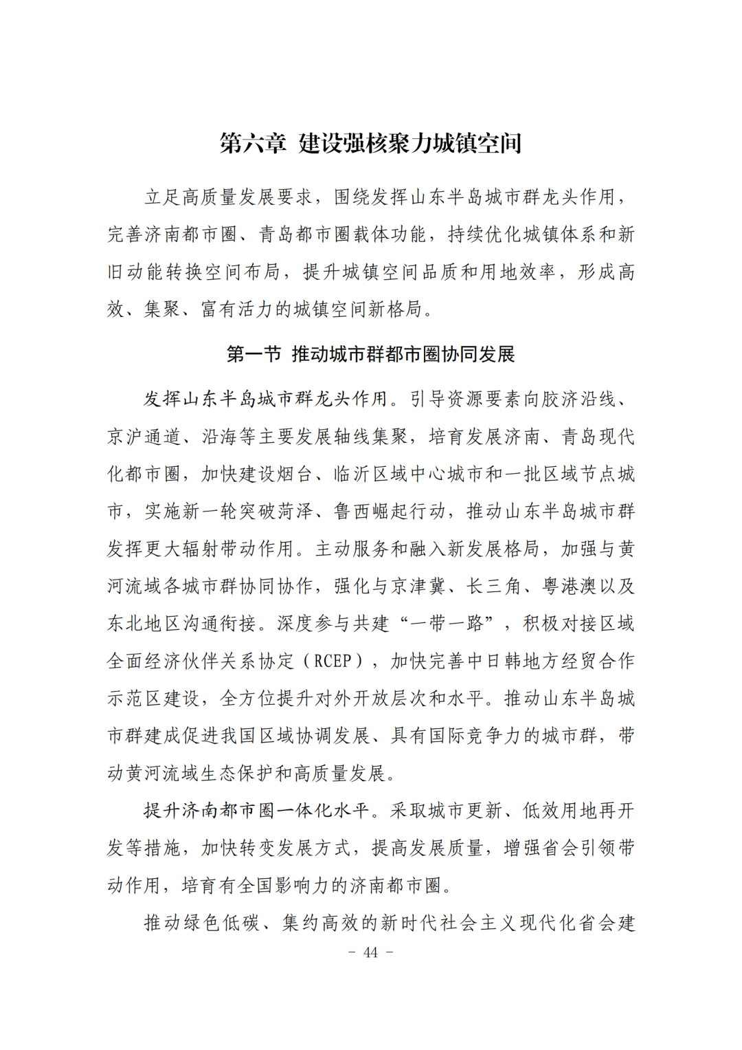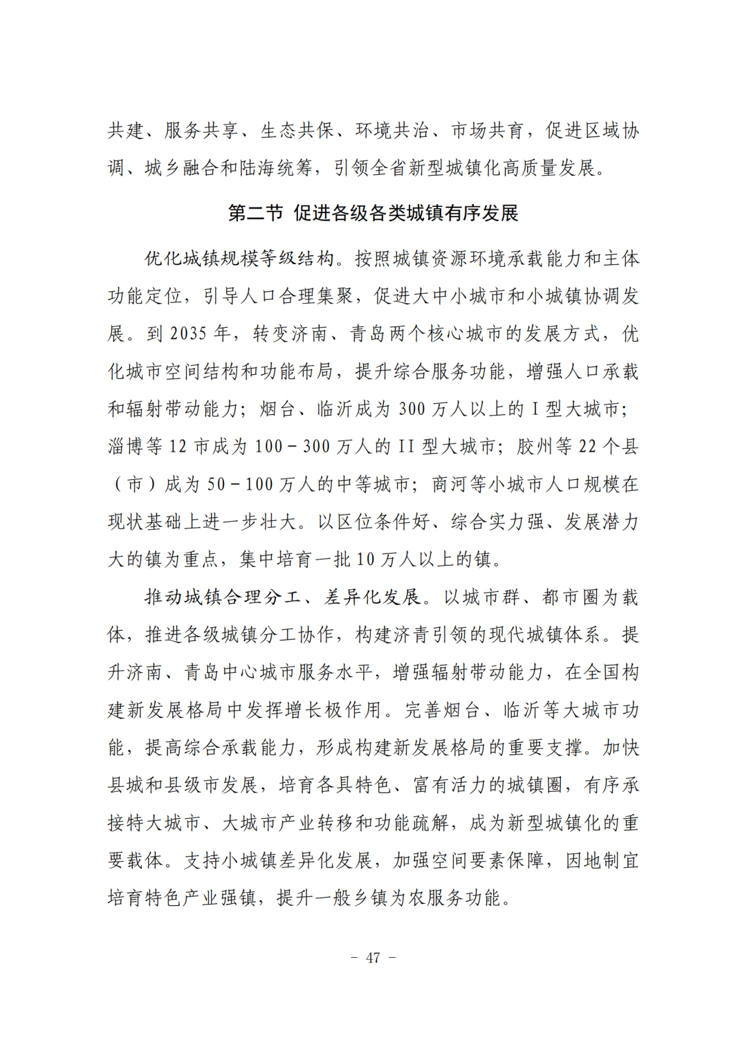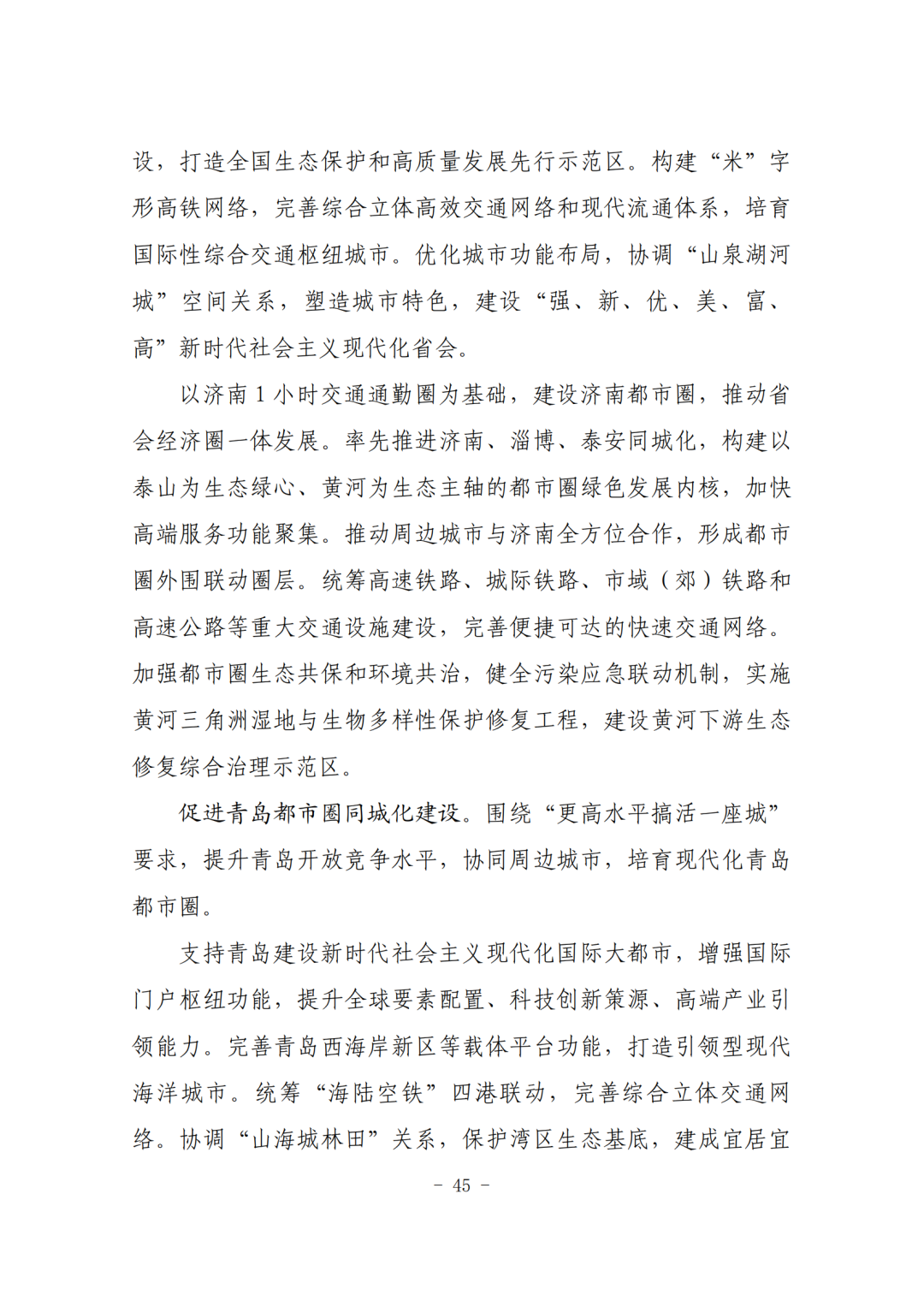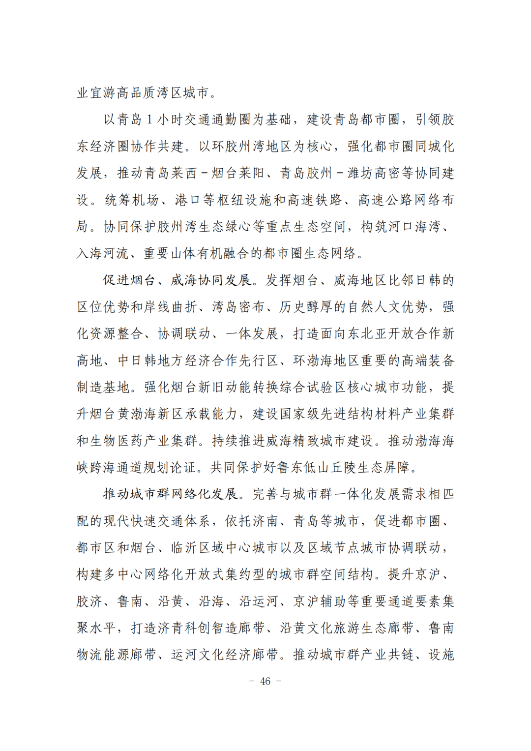 加快构建“一群两心三圈”区域布局,以济南、青岛为省域双中心,以烟台、临沂等大城市为区域副中心,推动形成多中心、网络化的城市群结构。