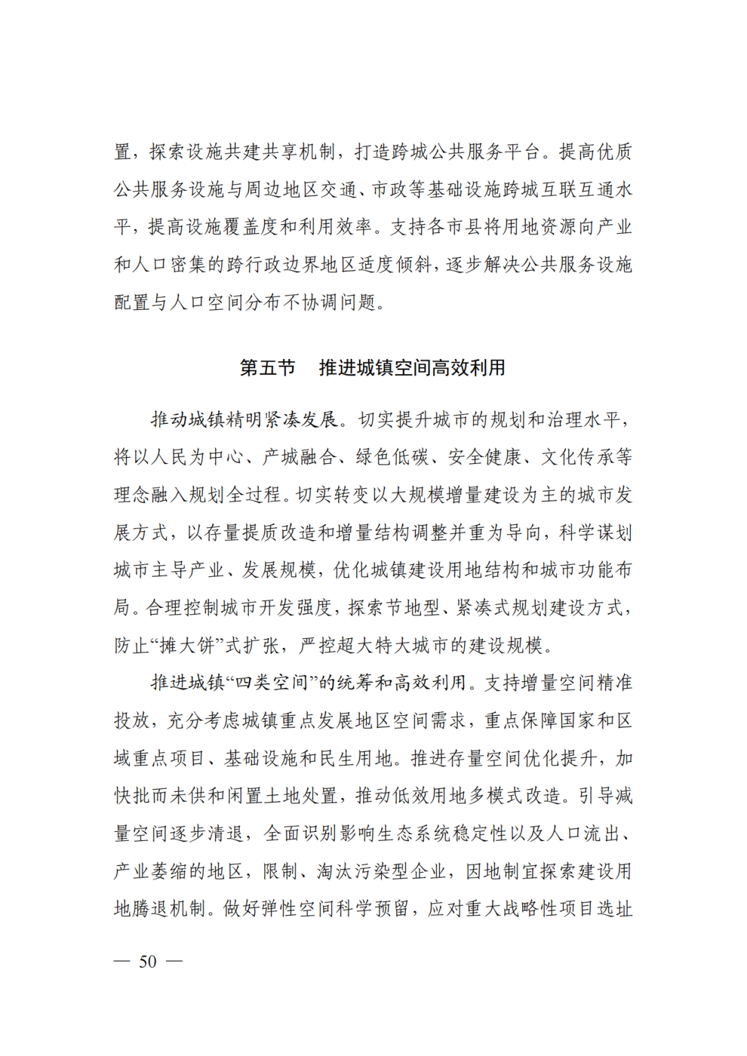 完善高快速交通网络建设,支持各功能节点差异化发展,促进跨界地区空间协调布局,强化都市圈核心区、都会区、外围地区的联动,形成组团式、多中心、网络化的空间格局。
