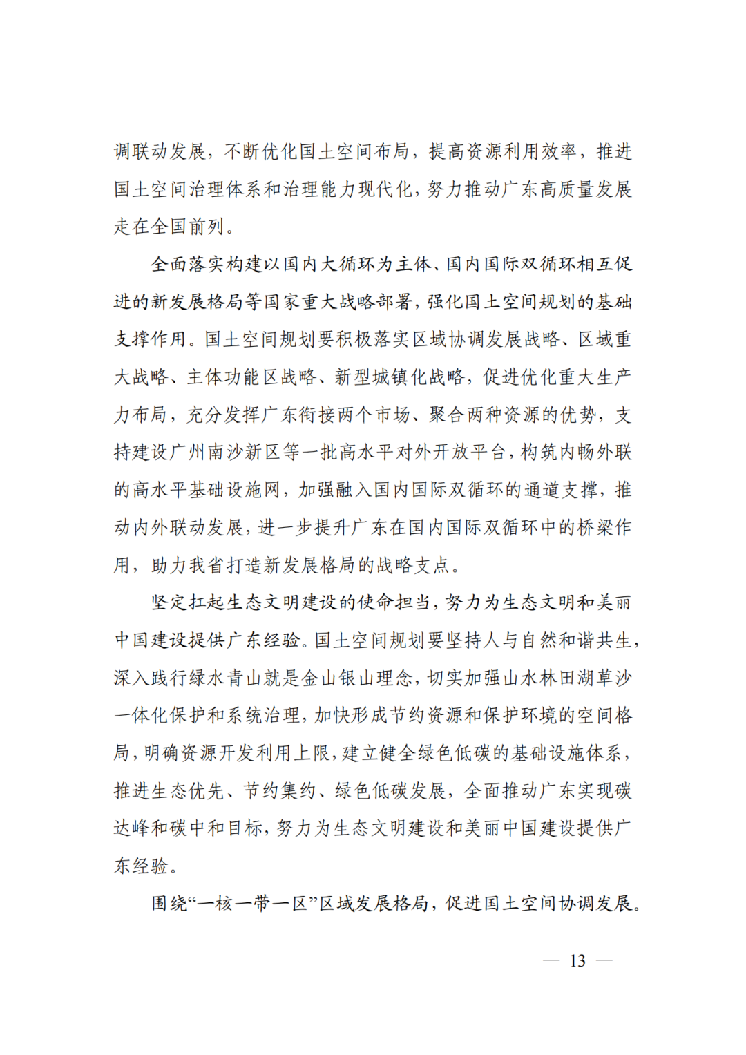 《广东省国土空间规划(2021—2035年)》已经国务院批复同意,现印发给你们,请认真组织实施。实施过程中遇到的问题,请径向省自然资源厅反映。