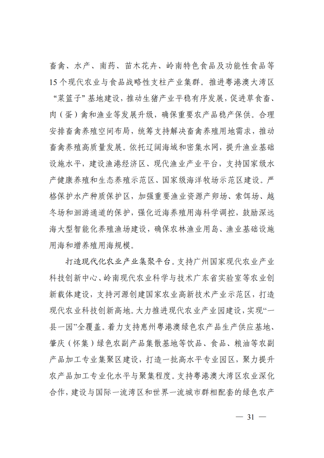 支持建设广州强核心簇群式都市圈,强化广州作为国家中心城市和综合性门户城市的带动作用,加快推进广佛全域同城化、广清一体化建设,加强广州与肇庆、云浮、韶关等周边城市协同发展。