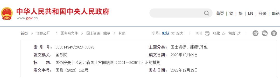 国务院关于《河北省国土空间规划