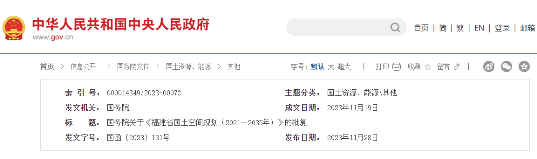 国务院关于《福建省国土空间规划