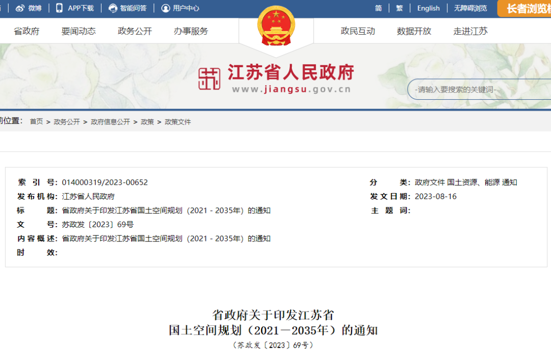 《江苏省国土空间规划(2021-2035年)》已经国务院批复同意,现印发给你们,请结合实际认真组织实施。