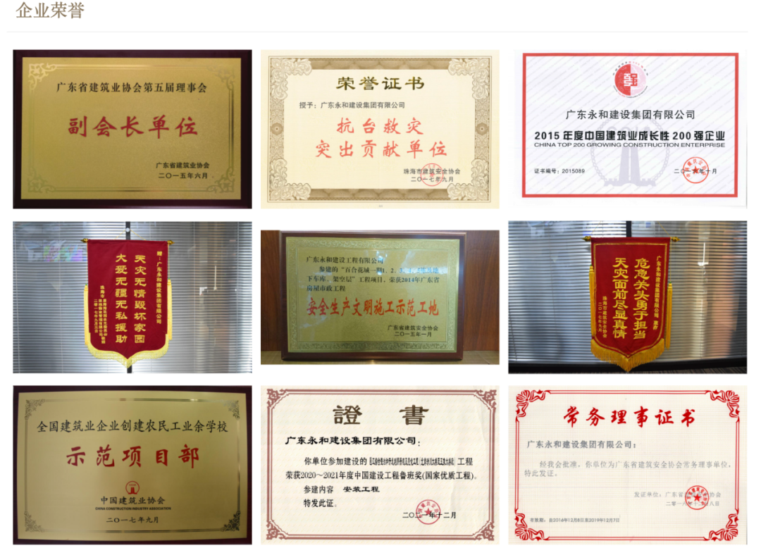 广东永和建设集团有限公司成立于2007年3月,注册资金6亿元,拥有3个一级资质:建筑工程施工总承包一级、市政公用工程施工总承包一级、建筑装修装饰工程一级,以及建筑机电安装工程等17项专业承包资质,现已发展为集工程设计、施工、建筑材料供应链、建筑劳务输出一体化多元化发展的广东省百强民营企业。 集团管理机构健全,实行区域化经营管理,随着集团业务的不断拓展,项目遍及广东、广西、海南、江西等省份。