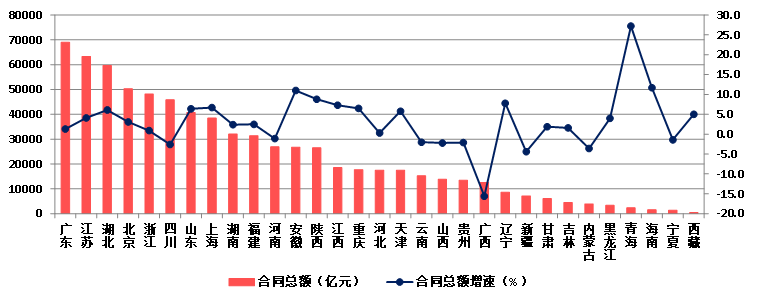 图20 2023年各地区建筑业企业新签合同额及增速