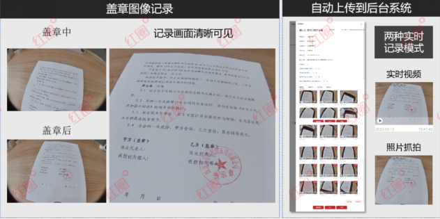全程监控影像留痕:设备内置高清摄像头,在每次盖印动作触发时,强制对文件内容进行拍照并录制动态视频,完整记录用印人、用印文件、周边环境等信息,所有影像资料实时上传至云端安全存储。