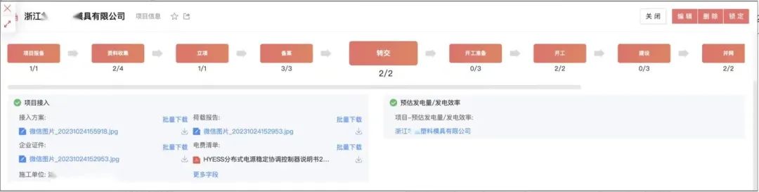 ○ 过程资料管理模块(项目档案全留痕): 系统化管理项目从立项、招投标到进度、质量、安全的全生命周期过程资料。所有数据云端留存,有效避免因人员变动造成的资料丢失或交接不清。支持施工完成后一键打包下载所有项目资料,便捷高效。